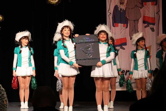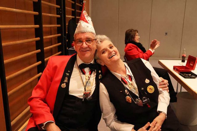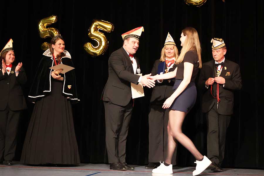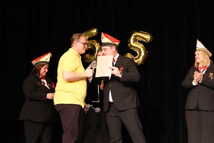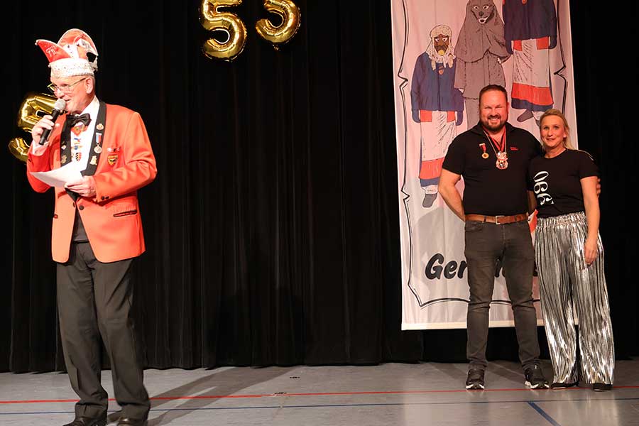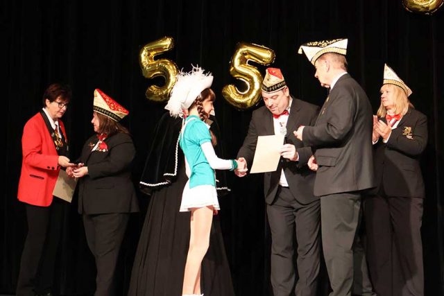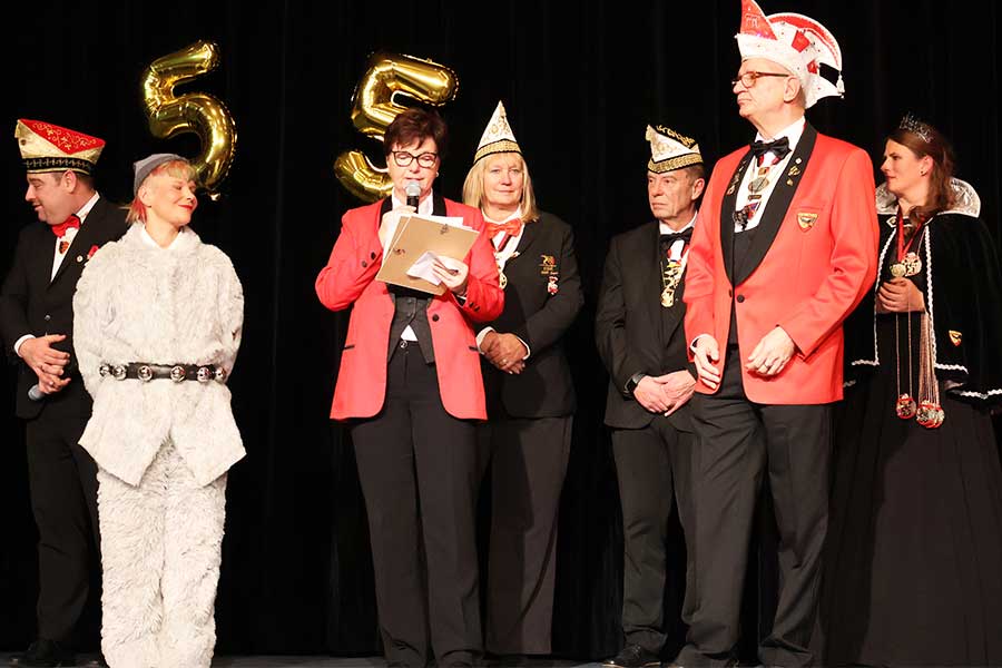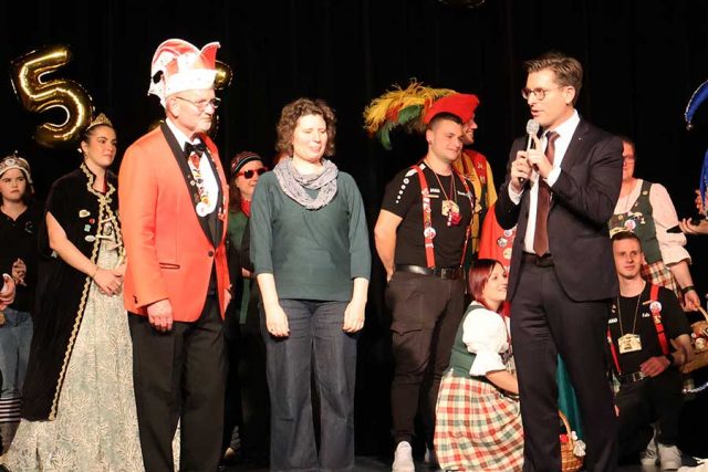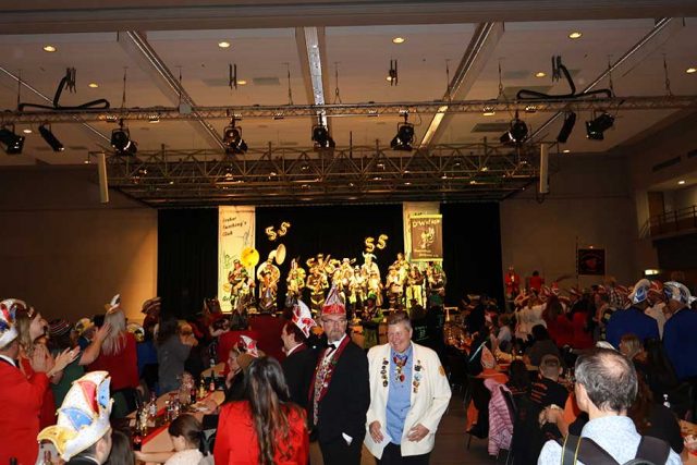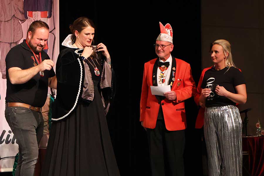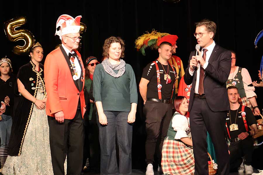Nach der Inthronisation war die Prinzengarde an der Reihe, bevor es zu den besonderen Ordensverleihungen überging. Weitere Ehrungen und Auftritte der Elferratsgarde oder NOL Hausfrauengarde / Männerballet sorgen für ein durchweg unterhaltsames Programm. Natürlich gab sich auch unser Bürgermeister Dirk Oestringer, in Begleitung von Dr. Angela Neuburger-Schäfer, die Ehre und sprach nette Worte auf der Bühne.