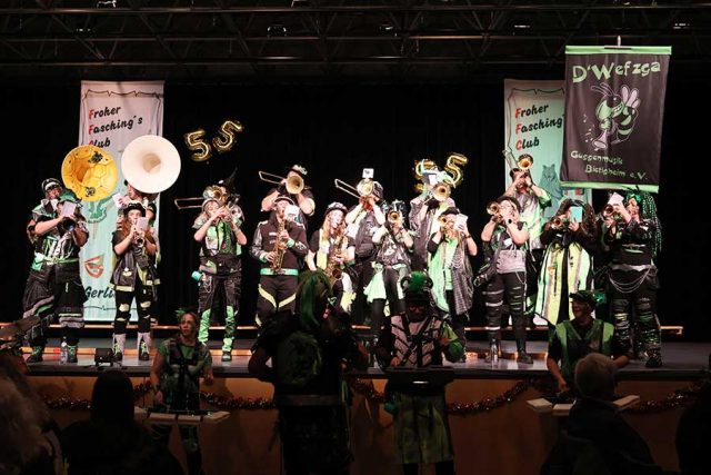 Unsere Inthronisation 2025 war programmtechnisch mal wieder pickepackevoll. Die Guggenmusiker D‘ Wefzga heizten der Stadthalle zu Beginn, ordentlich ein. Unsere Tanzgarden (Solisten, Narrensamen und blaue Garde) führten im Anschluss ihre neuen Tänze auf und zeigten dabei viel Kreativität und Akrobatik. Mit dabei war auch unsere befreundete NOL-Kindergarde mit Ihrem Showtanz: Die Bremer Stadtmusikanten.