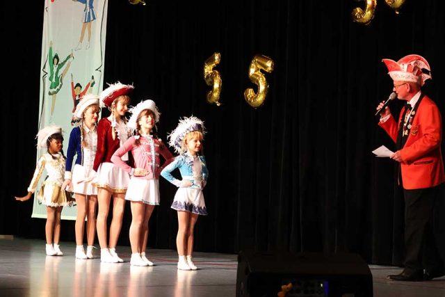 Unser Ehrenpräsident Sigfried „Siggi“ Mayer, führte in seiner lustigen und gekonnten Art die Moderation der Inthronisation 2025 durch. Pünktlich begrüßte er alle Anwesenden, gab das Programm bekannt und brachte die Stimmung in der Halle, auch mit gekonnten Dancemoves und stählernem Körper, zum Beben.
