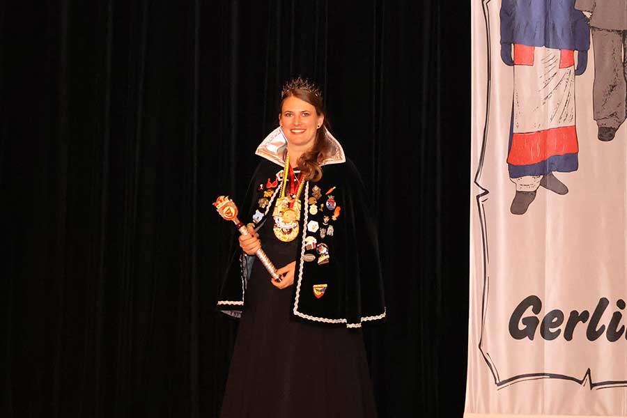 Standesgemäß unterstützt von unserer Prinzengarde und mit viel Applaus, wurde unsere neue Prinzessin in ihr Amt eingeführt und erhielt eine prunkvolle Inthronisation 2025. Als würde sie nichts anderes machen, sorgte sie mit einer lustigen Rede für viele Lacher und gute Laune unter allen Anwesenden und trat ihr neues Amt an.