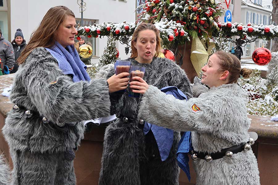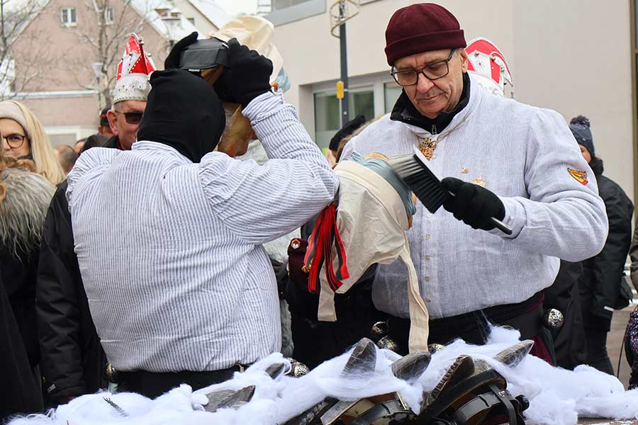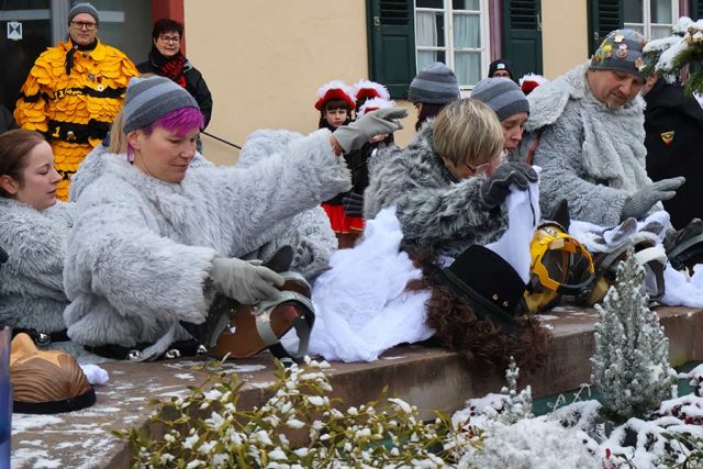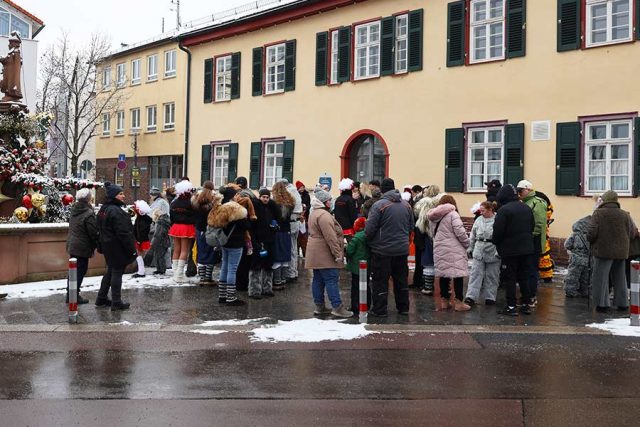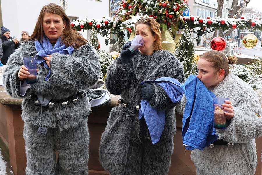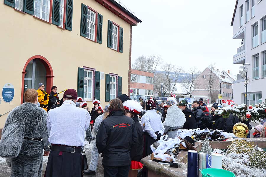 Unsere traditionelle Maskentaufe fand, wie gehabt, am Gerlinger Urbanbrunnen statt. Anders als in den letzten Jahren, fanden Maskenabstauben sowie Maskentaufe bei sehr winterlichen Temperaturen mit viel Schnee statt. Das konnte aber weder unsere Maskenträger stören („endlich mal nicht so heiß im Kostüm“), noch die zahlreich erschienen Vereinsmitglieder und spontanen Zuschauer, die das Ereignis beobachteten.